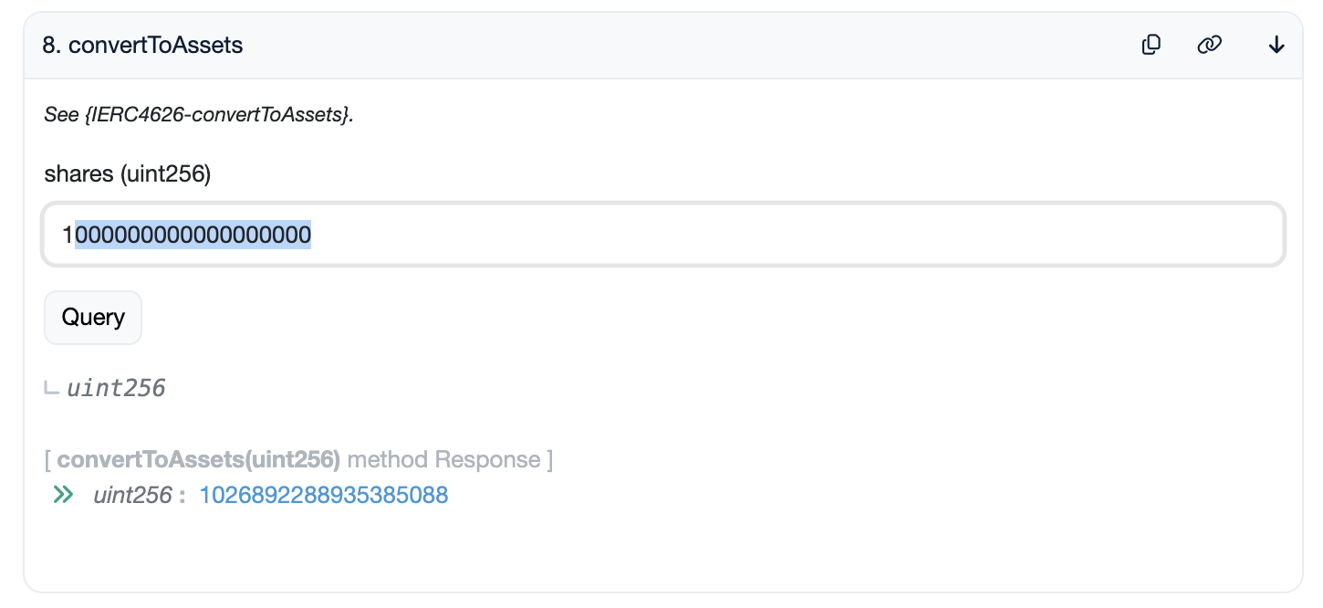 uint256 priceInWETH = convertToAssets(1e18);